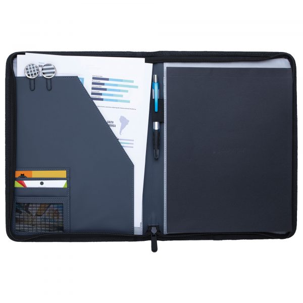 The KAPSTON® Pierce Zippered Padfolio is the perfect premium padfolio to bring to your next class, meeting or interview! Keep your notes and important documents handy with the 30-page FSC®-certified lined writing pad and interior organizational pocket, so that you’re ready for whatever your busy day sends your way.